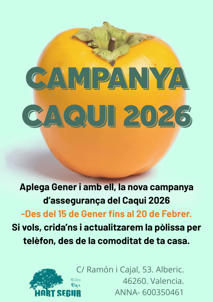 Des del dia 15 de Gener fins al 20 de Febrer podreu assegurar les vostres collites de caquis ací, com sempre, en HORT SEGUR. També podeu fer-ho telefonant al 600350461 o a través de WhatsApp en el mateix número.